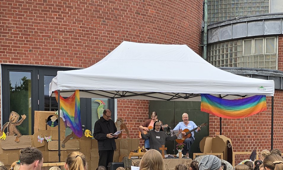 Ende Juni 2025 fand ein großes Kitakirchenfest zum Thema Arche Noah statt. Alle Familien und alle zukünftigen Familien der drei kath. Kindertageseinrichtungen waren eingeladen. Es gab viele Angebote rund um das Thema Arche Noah, das Fest wurde mit einem gemeinsamen Gottesdienst abgerundet.
